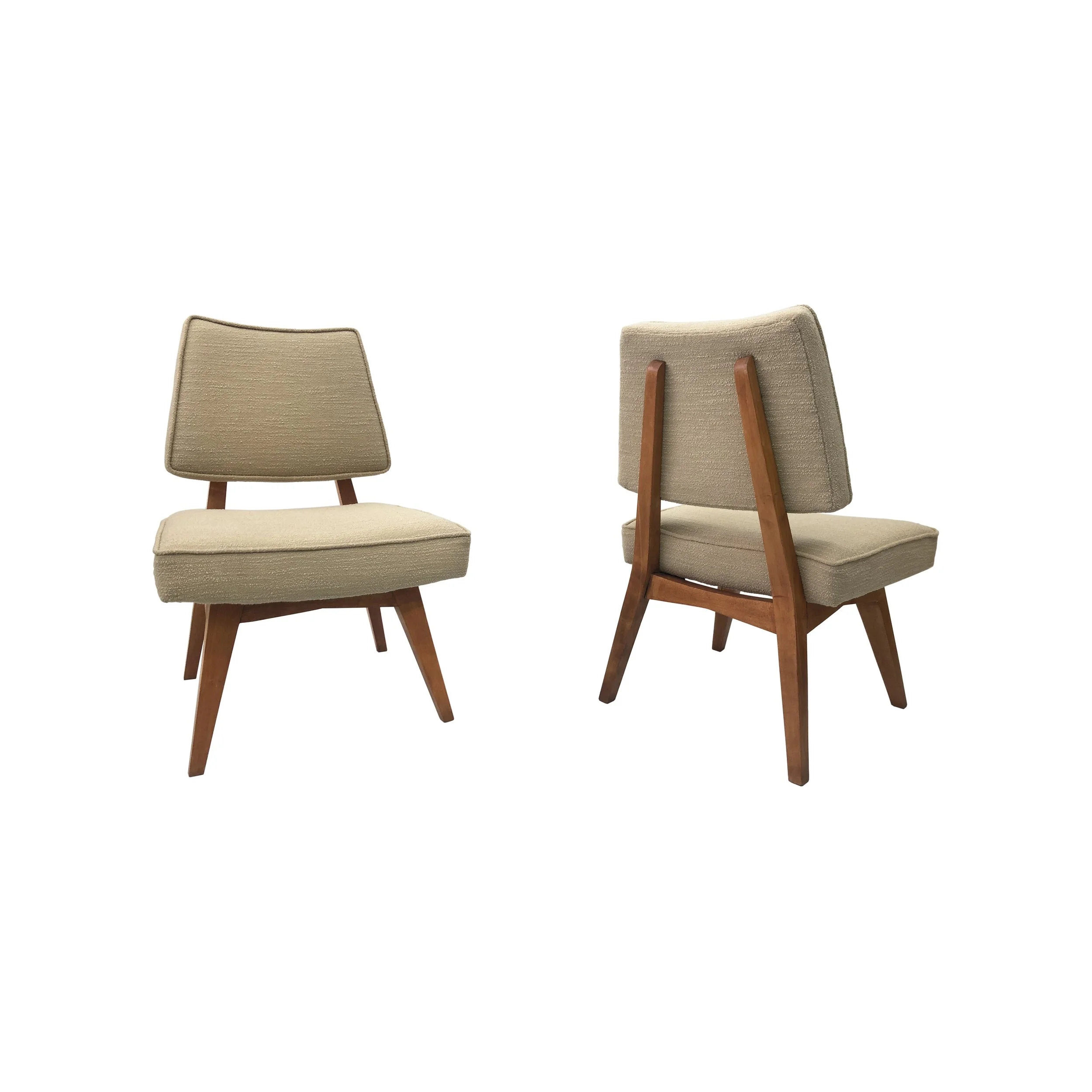 Pair Of Teak And Bouclé Lounge Chairs