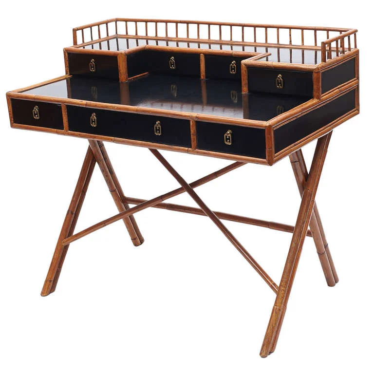 Elegant Black Lacquered and Brass Console Table