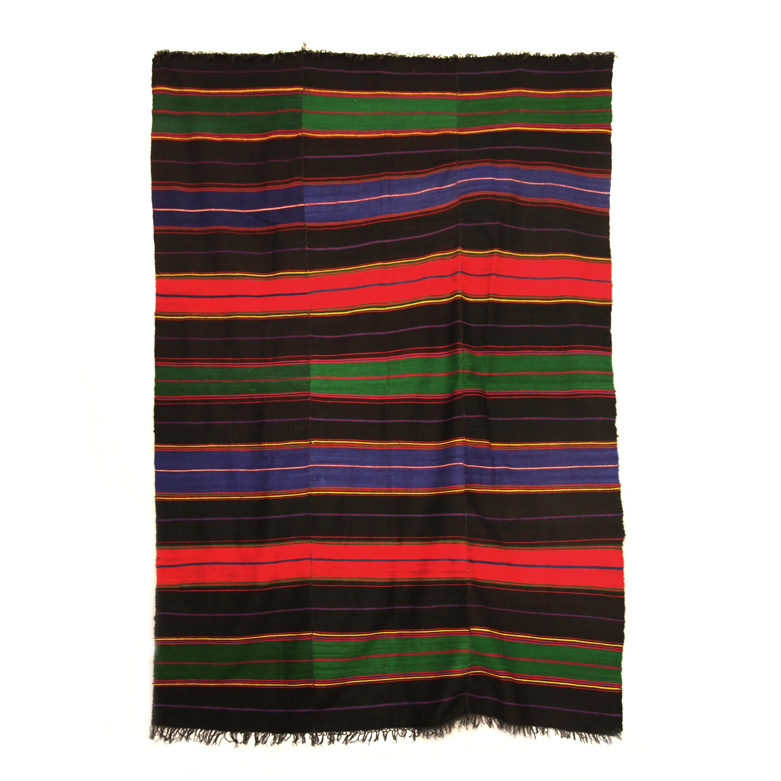 XL Handmade Black and TriColour Wool Rug
