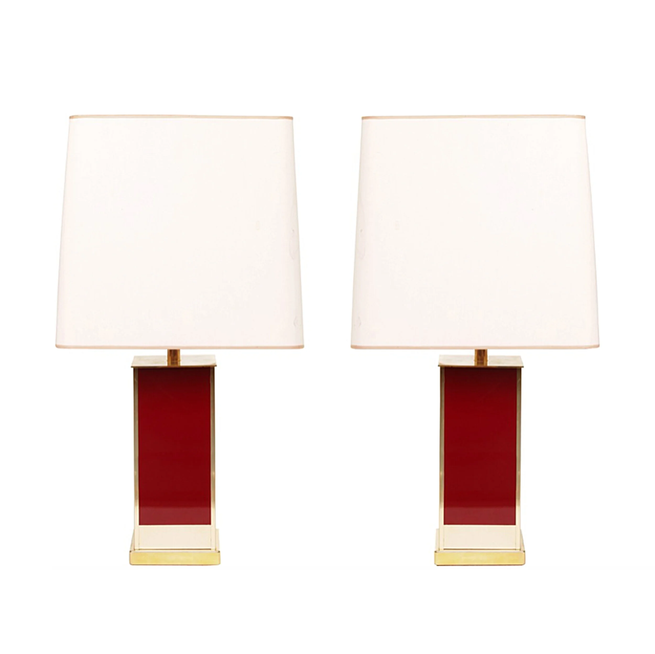 Brass Burgundy Table Lamps Maison Jansen