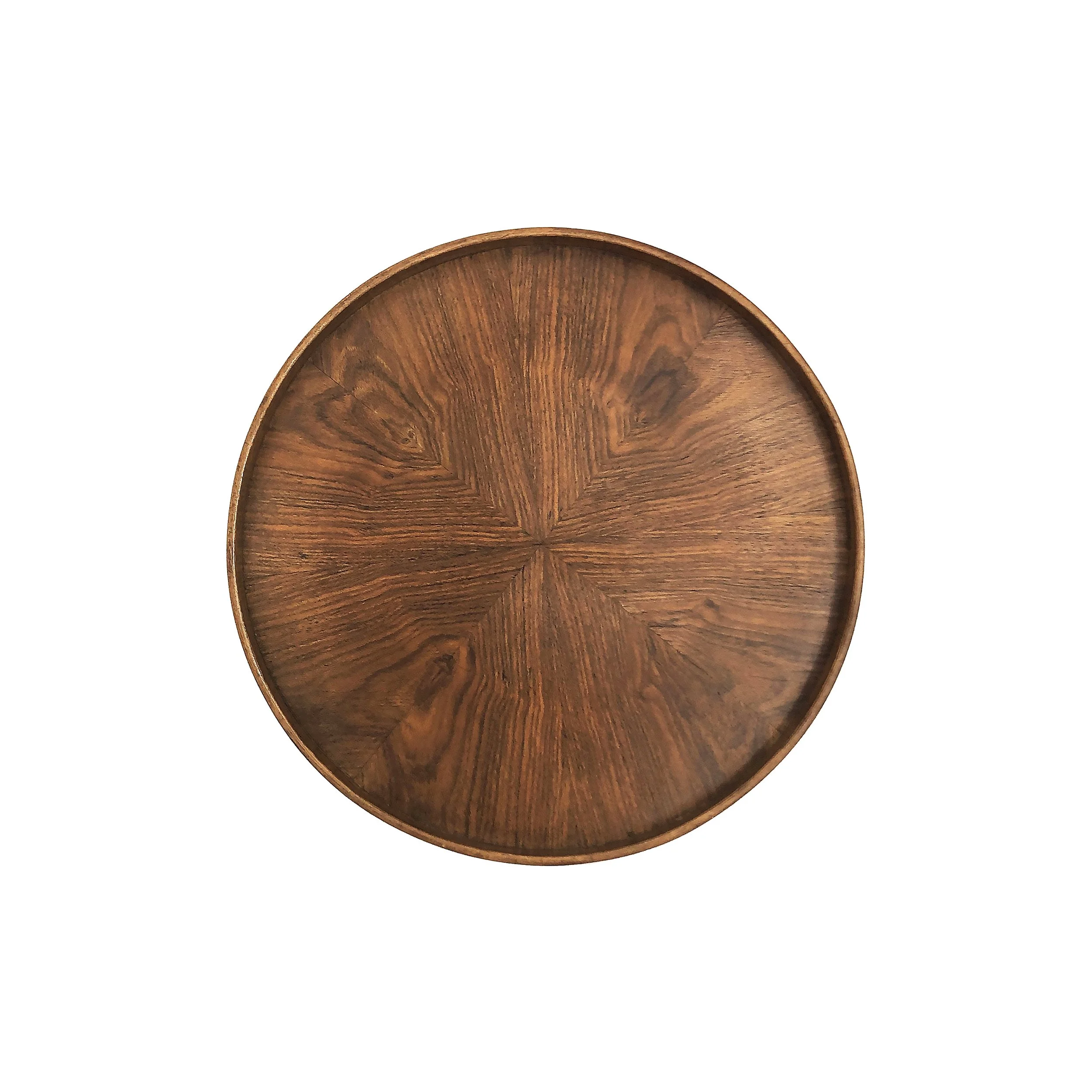 1960s Round Bookmatched Oak Tray