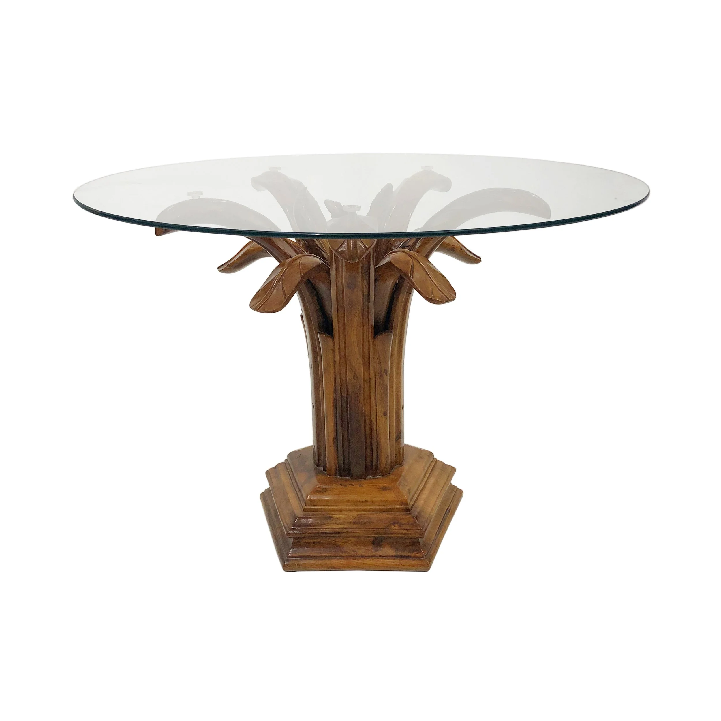 Carved Burl Wood Palm Tree Side Table