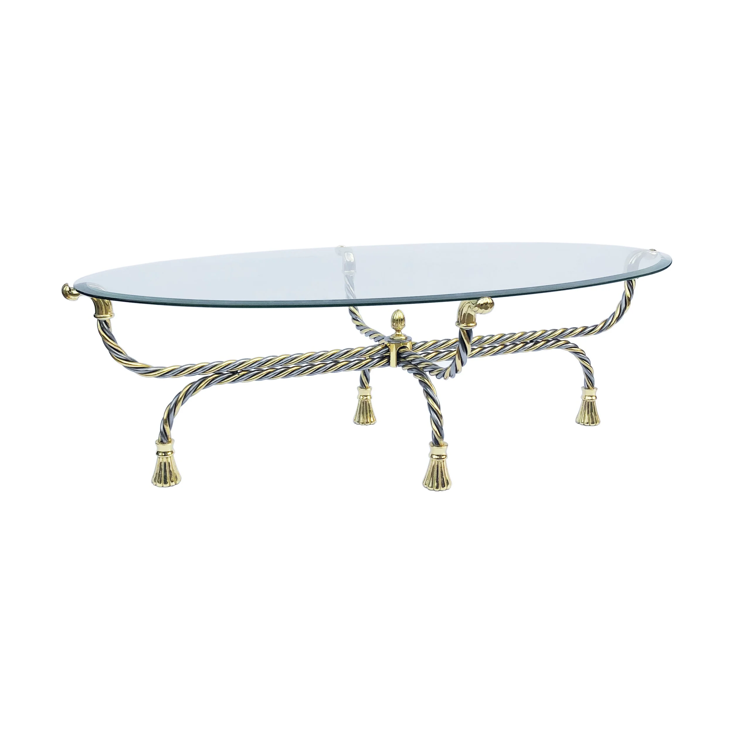 Brass Chrome Twisted Rope Oval Coffee Table